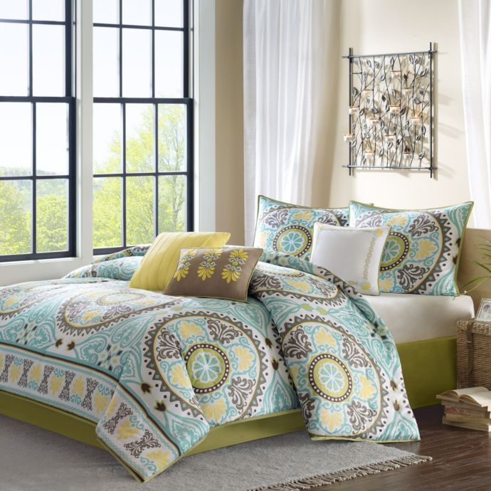 blue and yellow bedding